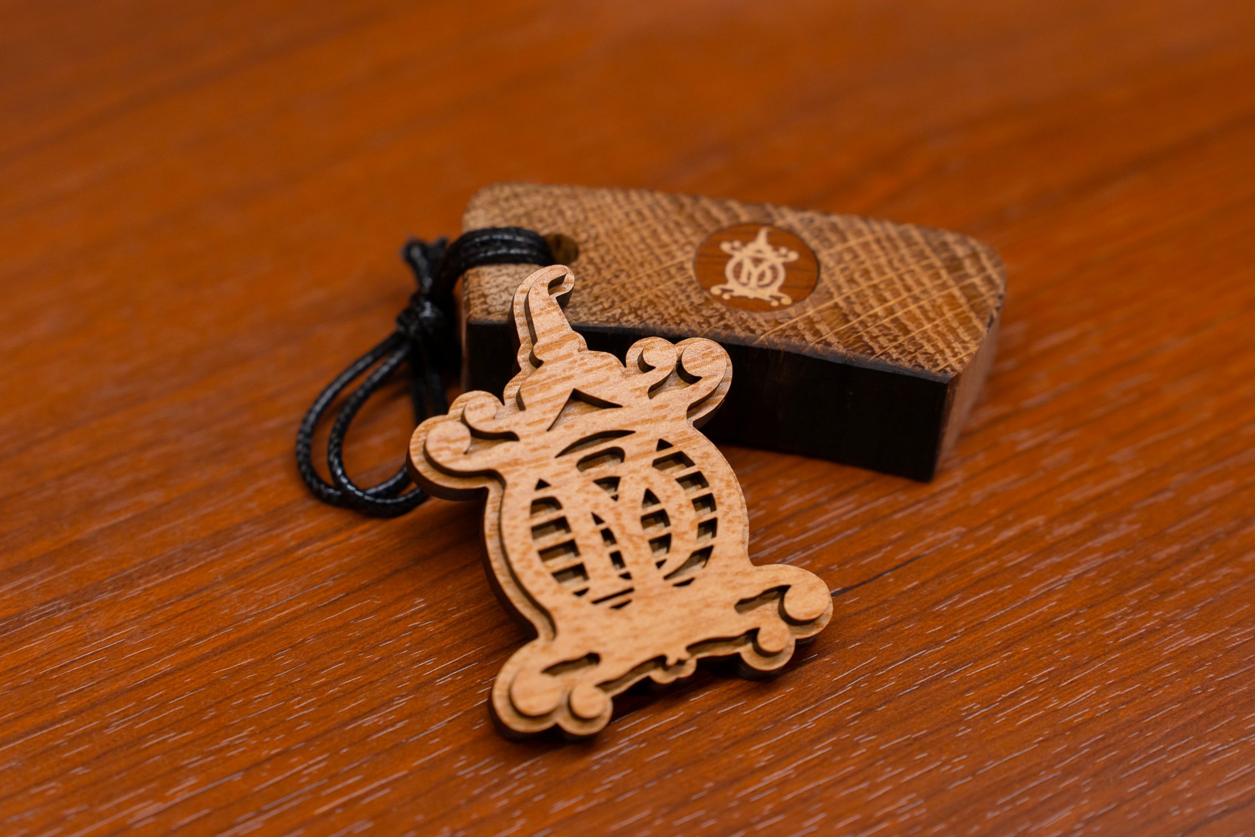 蒸溜所ショップでは、新商品として樽材をリメイクしたキーホルダー、革製コースター、マグネットの販売を開始。